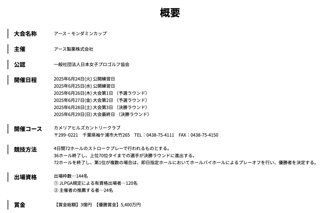 それ以来、日本女子プロゴルフツアーの一環として毎年開催され、多くのトップ選手が参加しています。