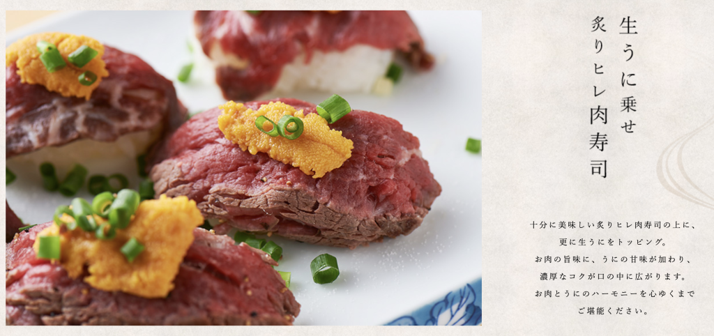 特に人気が高いのは、肉の旨みややわらかい食感が楽しむことのできる肉寿司です。