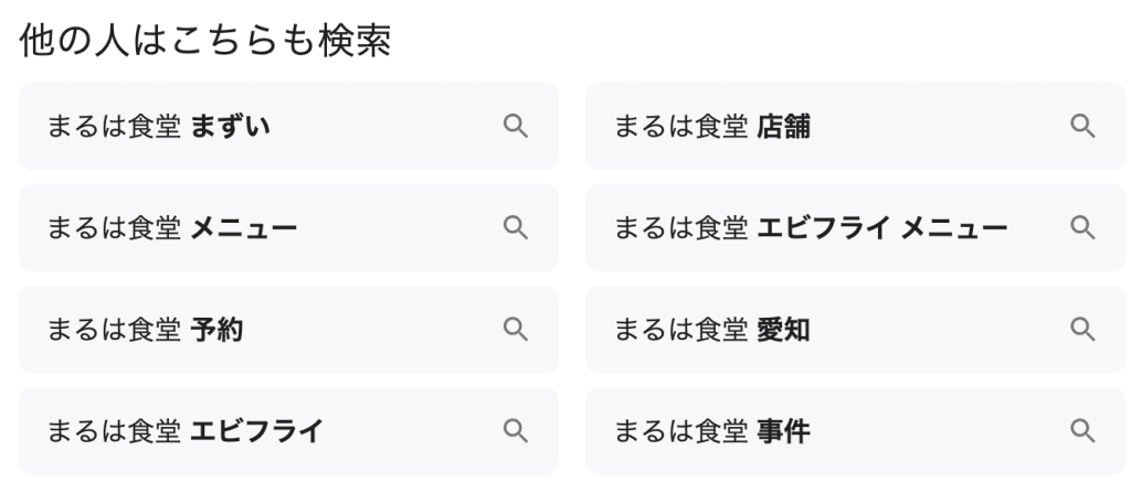 名物のジャンボエビフライが人気のまるは食堂ですが、検索結果には「まずい」「事件」といった声が挙がっているようです。