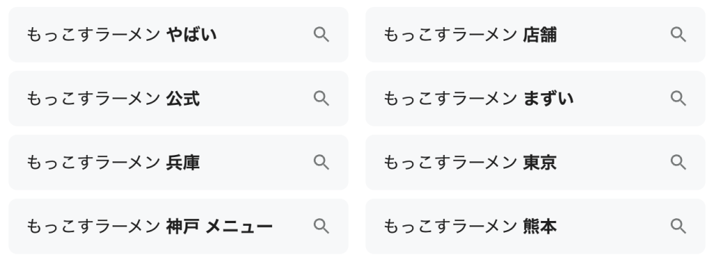 神戸市を中心にチェーン展開している「もっこすラーメン」ですが、検索結果には「やばい」、「まずい」、「炎上」といったワードが出てくるようです。