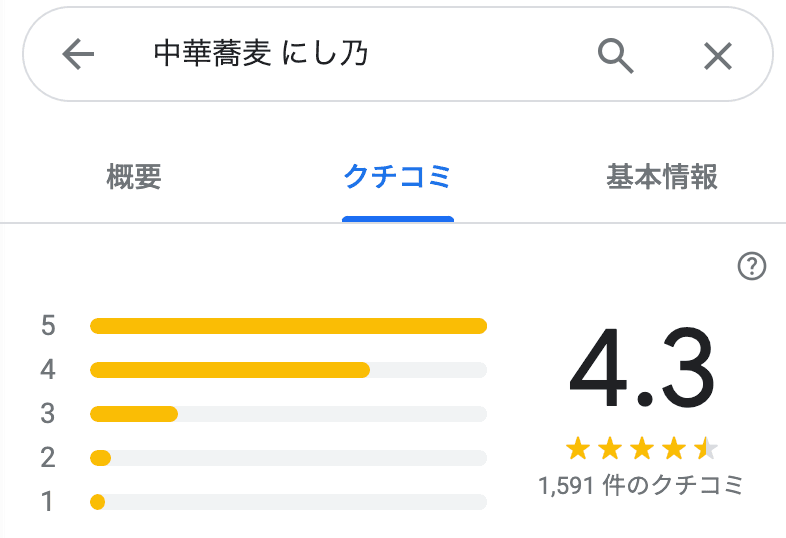 2024年12月時点だとGoogleマップの口コミ評価は1600件ほどあるのに4.3と高いです。