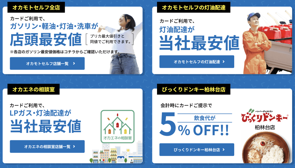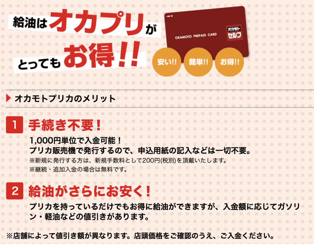 オカモトプリカを持っておけば、カード会員価格で利用でき、店舗によっては5円/Lも安いです。