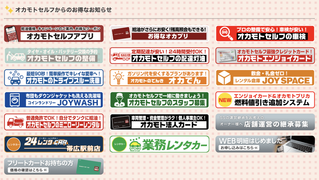 加えて、オカモトセルフアプリやエンジョイカードを利用することで、給油価格がさらに安くなります。