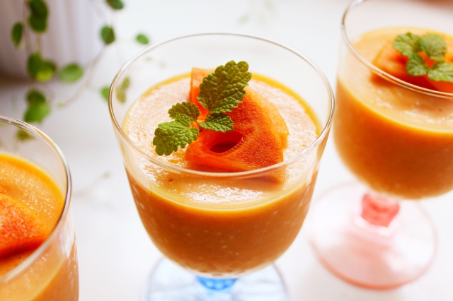 素朴な味わいが魅力の柿プリンは、柿と牛乳を混ぜるだけでプリンのように固まり、手軽にビタミンCを摂取することができます。