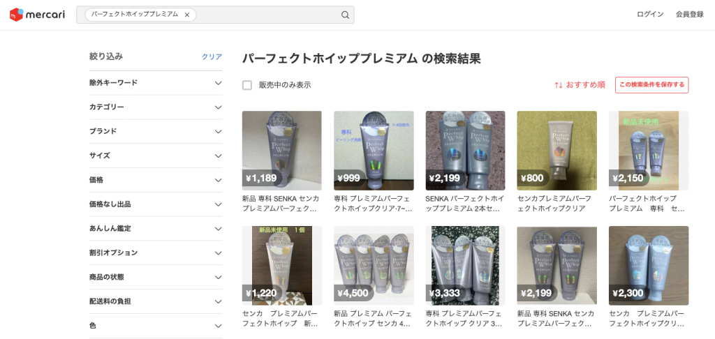 フリマサイトでもプレミアムパーフェクトホイップクリアを見つけることができます。