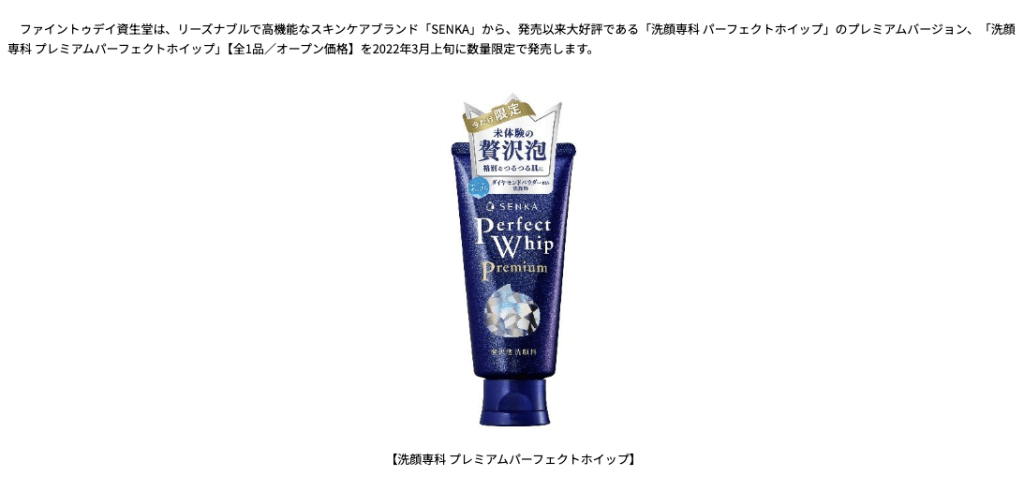 プレミアムパーフェクトホイップクリアは、SENKAブランドの中でも特に数量が限られている商品です。
