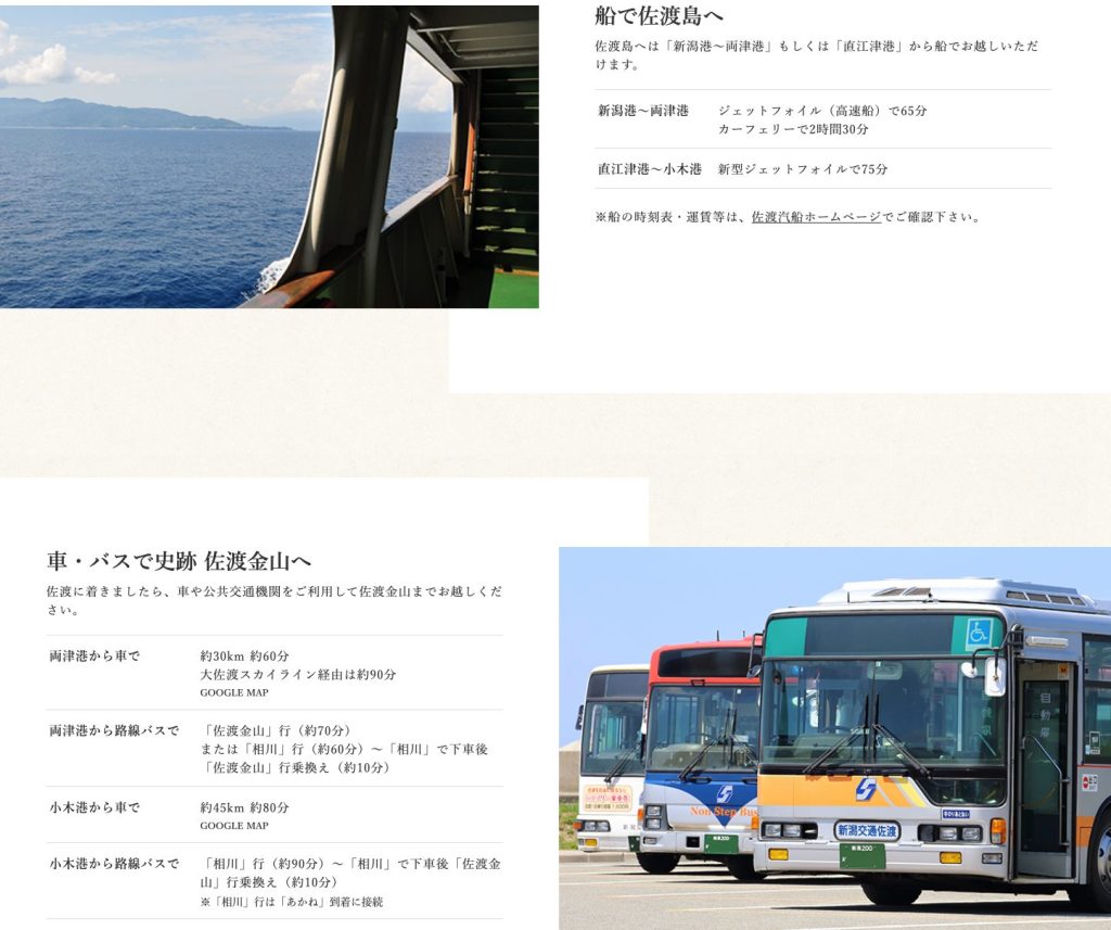 • 佐渡金山までのアクセス方法船で佐渡島へ